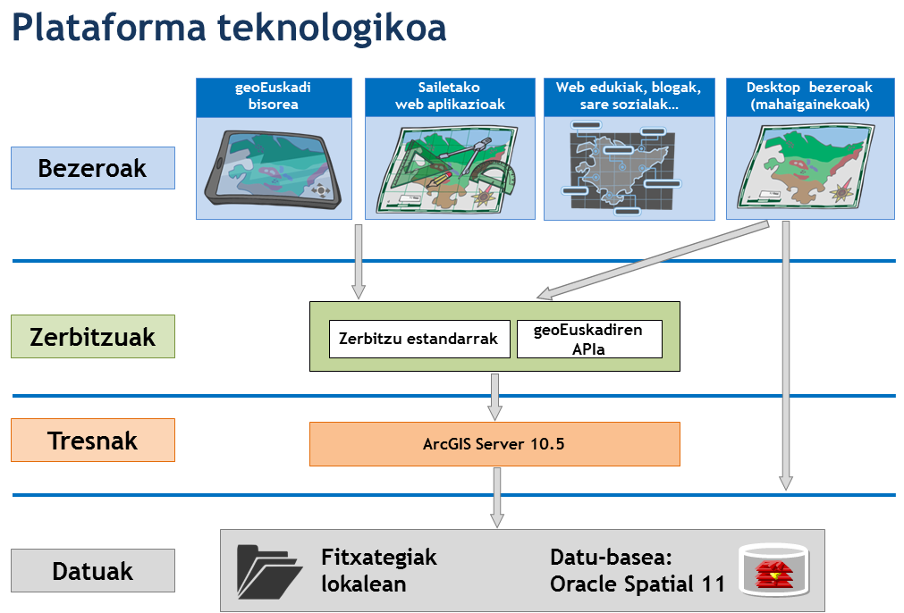 - GIS zerbitzariak Zerbitzuak (Teknologikoak) - Plataforma-zerbitzuak - Hardware eta Software produktu eta arkitekturen erabilera