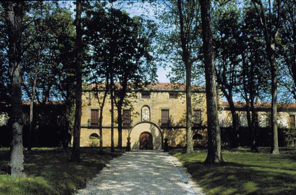 Palace of Narros, the town's main monument due to its historical links, as it is built over the tower of the Zarauz, a family whose presence here appears to predate the founding of the town. This 16th century Renaissance style palace is built of sandstone, except for the coat of arms made of limestone. The main façade, whose mouldings include a sundial, faces an English style garden designed in the 19th century. It was the summer residence of Isabel II.