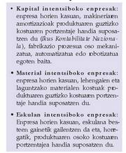 Ekoizpen motak Aztertu diren kasu guztietan baliabide batzuk agertu dira (makinak, espazioa, langileak, informazioa, dirua...) zenbait produktu edo zerbitzu bihurtzeko erabiltzen direnak, nahiz eta eraldakuntza hori adreiluak egitekoa bezain nabaria beti ez izan.