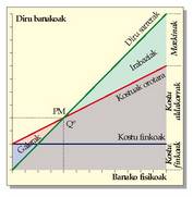 Oreka hori ulertzeko eragiketa hauek hartzen dira kontuan: — Guztizko diru sarrerak (GDS) kalkulatzeko, saldutako produktuaren unitateen kopurua (Q) bider unitate bakoitzaren prezioa (p), egin behar da, alegia:— Guztizko kostuak (GK) kostu finkoak (KF) gehi kostu aldakorrak (KA) dira:Ondoko irudian Qº sinboloak errentagarritasunaren atalasea islatzen du, puntu horretan guztizko kostuak eta guztizko diru sarrerak gurutzatzen direnez: