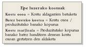 • Kostu marjinala. Honen bidez neurtzen da guztizko kostua nola aldatzen den ekoizturiko kopuruari unitate bat gehitzen zaionean.