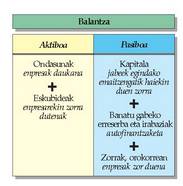 “Balantze” deritzagu pertsona fisiko nahiz juridiko batek une jakin batean dauzkan baliabideen inbentarioari. Baliabideak aldi berean ikuspegi bikoitz batetik aurkezten dira: izaera edo formaren arabera eta jatorri edo sorburuaren arabera. Izaerari jarraiki sailkaturiko baliabideek aktibo izena dute, eta pasibo sorburuaren arabera sailkatuek.