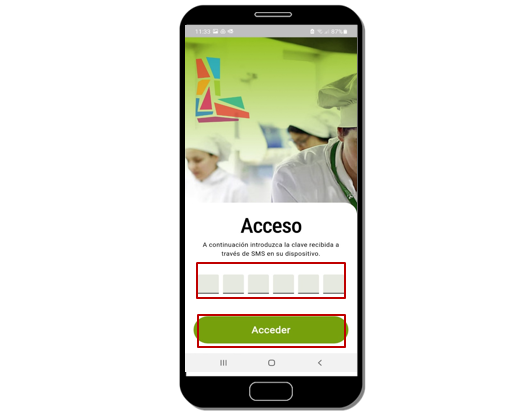 Se va a recibir un código por SMS que es necesario introducir. Posteriormente pulsar “Acceder”.