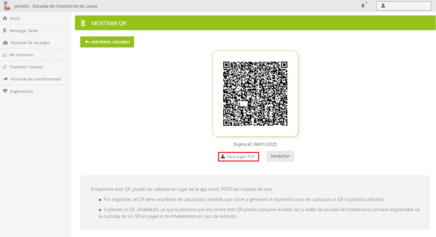 El saldo del monedero es recargable y no expira. Sin embargo, no se permite la devolución de saldo en metálico, salvo en caso de cancelación del servicio por parte de HOSTELERIA LEIOA.