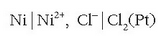 Nikelezko elektrodoa polo negatiboa da eta klorozkoa positiboa. Pila honetan ez da beharrezkoa gatz-zubirik edo paretarik jartzea, Cl - ioiek ahalmenik ez dutelako nikelezko xaflatik elektroiak hartzeko. Hona pilaren adierazpena: