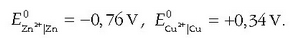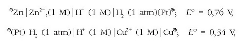 Zinkaren eta kobrearen elektrodo normalez osatutako pilaren indar elektroeragilea kalkulatzeko, elektrodo bakoitzean gertatzen den erreakzioa idatziko da, potentzialarekin batera erreakzioari dagokion zeinuarekin: