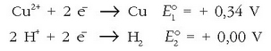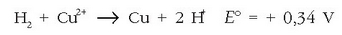 Kobreak du erredukzio-potentzial handiena; beraz, berau izango da erreduzituko dena, oxidatuko den hidrogeno ioien aurrean: