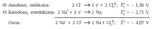 Erreakzioa ez da berezkoa eta 1,02 V-ko indar elektroeragilea beharko da erreakzioa idatzi den bezala gerta dadin