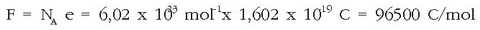 Gai baten pisu baliokidea askatzeko behar den elektrizitate-kantitatea esperimentuz neurtu da eta 96.500 C-eko balioa du. Elektrizitate kantitate horri «faraday» esaten zaio, asmatu zuen ikertzailearen omenez eta F da unitatearen ikurra.