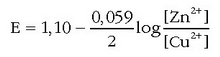 Pilaren indar elektroeragilea eta disoluziotan dauden ioien kontzentrazioak erlazionatzen dituen ekuazioa Nernst-en ekuazioa da. Daniell-en pilaren kasuan: