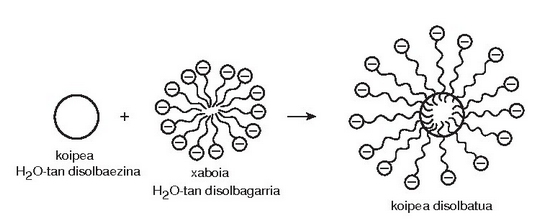 Gertaera bitxia da xaboi edo garbikariena. Hauetan ere «antzekoak antzekoa disolbatuko du» deitu diogun araua baliagarria da. Xaboiak kate hidrokarbonatua luzeko azido organikoen sodio gatzak dira.