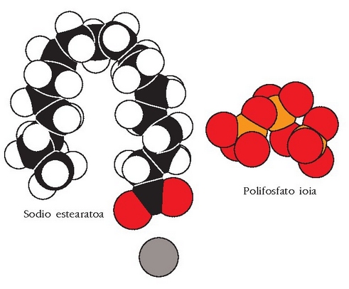 Polifosfatozko ioiak handiak dira eta ur gogorretara gehitutakoan, kaltziozko katioiak inguratu eta beste anioi batzuetatik babesten dituzte. Honela beste anioi horiekin erreakzionatzen ez dutenez ez dago hauspeatze erreakziorik. Ioi batek beste bat inguratu eta babesten duenean ioia «harrapatu» egin duela esaten da (sequestration) eta hori egiten duten ioiei harrapakariak esaten zaie.