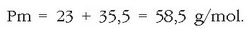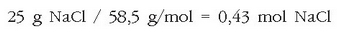 Ad. 25 g NaCl disolbatu nahi dira uretan 2 litro disoluzio izan arte. Zein izango da mol kontzentrazioa? NaCl-ren pisu molekularra kalkulatu behar da: