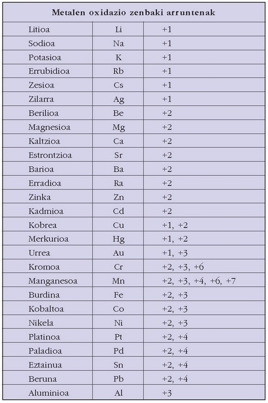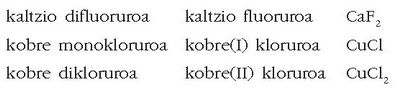 Baina badira balentzia bat baino gehiagorekin agertuko diren elementuak. Kasu hauetan elementua zein balentziarekin ari den zehaztu beharko da: