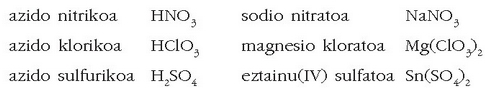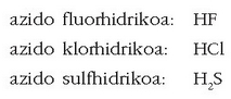 adibidez, azido sulfurikoa: