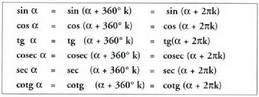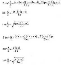 Formula hauek, aldeak ezagunak izanda triangeluen angeluak