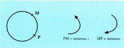 Zirkunferentzian biraketanoranzko bat aukeratzen denean, zirkunferentzia hori orientatua dagoela esaten da. Noranzkoetako bat positibotzat hartzen da eta bestea negatibotzat. 111.3 puntuan ikusi den legez, trigonometrian noranzko POSITIBOA (+), BIRAKETA ERLOJU ORRATZEN BIRAKETA-NORANZKOAREN AURKAKO NORANZKOAN egiten denean izaten da.