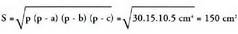 direlarik. a = 15 cm; b = 20 cm; eta c = 25 cm.a) Heronen formula erabiltzen bada, ebazpena oso erraza da :
