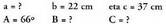 eta beste bi angeluen balioak.Ebazpena :Datuak : b = 10 cm c = 7 cm A = 60 ° ; Baldin eta A = 60° bada, orduan, B + C = 120 ° Tangentearen teorema erabiltzean, hau ateratzen da :
