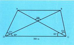 9. Ondoko irudian, AB = 530 m distantzia ezaguna da
