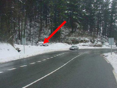 Cruce a Unza en la carretera A-2521 entreOrduña y el alto de Altube. En sus inmediaciones se encontraría la fosa en A o en B.