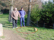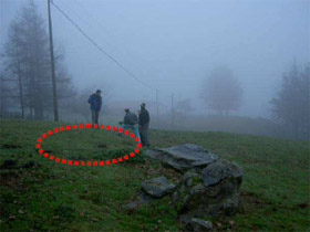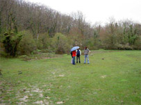 - Características de la fosaEl lugar en la actualidad es una pradera para pastos, con anterioridad hubo un manzanal. Nos informan que hace años se rellenó parte de la parcela con tierra aportada mediante camiones. La fosa se localizaría en las proximidades de la pared de piedra que sirve como cierre de la propiedad, buscando el punto de mayor profundidad de la tierra más blanda a unos de 30 metros de distancia del caserío.
