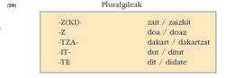 Parentesi artean ezarri den (z) hori -it- pluralgilearekin batera agertuko da, ondoren -KE edo -TE badarama. Hots: nituen, baditu, ?
