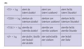 mendekoetan erabiltzen baitira beti: dezala, gaitezen, etab.3. Adizki bat osatzeko, zutabe bakoitzetik ?goitik beherako lerro
