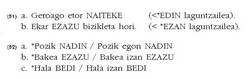 denean, e eta nor plurala denean, it. Adibidez, zezan, baleza, etab. baina zitzan, balitza, etab.(NOR-NORI-NORK jokoa)
