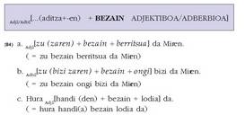 posposizioaz osatua. Aditzoinari eransten zaio posposizio hori:(83) a. Loreondo batek, lilia idek arau, hostoa galtzen du.. . Irabaz arau, jan.