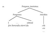 Aditz jokatua duten perpaus txertatuetan perpausari atzizki bat eransten zaio (edo aurrizki bat, bait- eta ba-ren kasuan bezala). Atzizki edo aurrizki hori perpaus osoari badagokio ere, aditzari itsasten zaio. Izen sintagmetan ere gauza bera gertatzen zen: kasu marka edo posposizioa izen sintagma osoarena izan arren, sintagmako azken osagaiari itsasten zaio. Hortaz, perpaus hauen taxu ohikoa hau izango da: