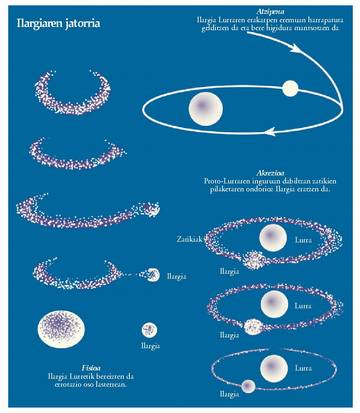 izango duela gune horretan.Ilargiaren jatorriari buruzko hiru teorien azalpen