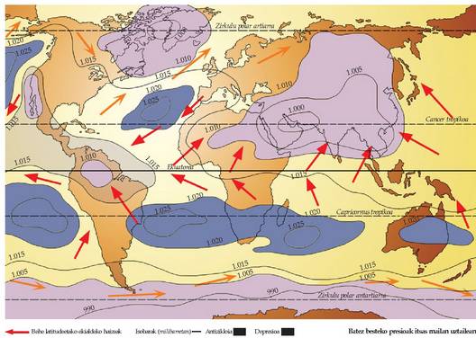 –behe latitudeetatik– energia gutxiegi duten tokietara –goi latitudeetara–.
