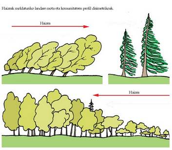 Haizeak norabide nagusi bat badu eta indar maila batetik gorakoa denean, itsasertzeko puntu batzuetan edo mendien tontorretan esaterako, deformazioak eta bihurdurak eragin ditzake landare zurtsuetan edo zuhaitzetan; eta haizeak etengabe jotzen duen lekuetan, zuhaitzak izateko ere eragozpen eta oztopo izan daiteke haize hori.