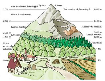 Erliebeak ere mailaketa bat eragiten du isurialdeak kolonizatzen dituzten landareen artean, urteko batez besteko tenperatura mailaz maila hotzagoa izaten baita gora ahala, eta hezetasuna ere aldatuz joaten baita. Goratasun mailaketa horretan elkarren segidan dauden multzoei «solairu edo maila bioklimatiko» esaten zaie. Europa eta Siberiako lurretan, Euskal Herrian ere bai, horrenbestez, mendi oineko, mendiko, subalpino eta alpino mailak bereizten dira.