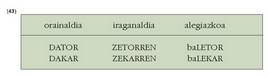 mendekoetan erabiltzen baitira beti: dezala, gaitezen, etab.3. Adizki bat osatzeko, zutabe bakoitzetik ?goitik beherako lerro