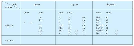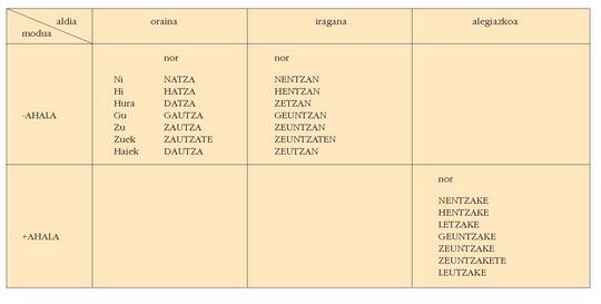 ohar egitea:1. Koadro hauetan ez dira biltzen Euskaltzaindiak onartutako adizki