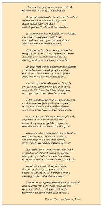 euskara batean idatzia, eta zorigaitzez