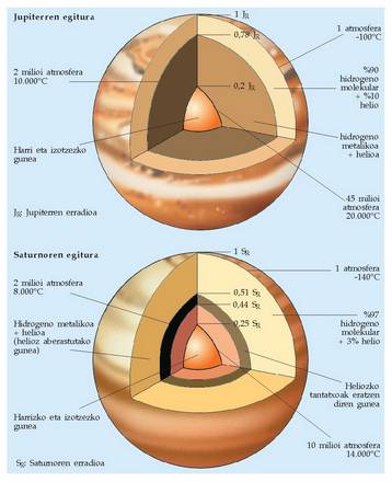 Jupiter eta Saturno dira Eguzki sistemako planeta handienak;