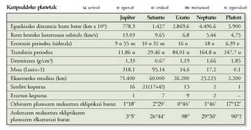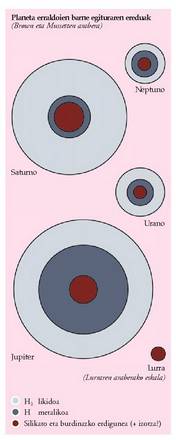 planeta erraldoiak; bestetik, Urano eta Neptuno, planeta urrunak;
