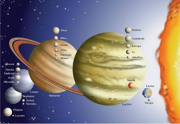 Jupiter, Saturno, Urano, Neptuno eta Pluton planetez dago osatua.