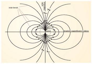 Lurraren eremu magnetikoa eredu dipolar erregular baten arabera adieraz daiteke, eta Lurraren erdigunean eta errotazio ardatzari buruz pixka bat okertua (11 gradu) legokeen barra imandu batek sortuko lukeen eremuaren antzekoa litzateke. Horregatik polo magnetikoak ez datoz guztiz bat polo geografikoekin. Gaur egun, ipar polo edo iparburu magnetikoari 78° 30’ ipar latitudean eta 69° mendebal longitudean dagoen puntua dagokio, ipar-mendebaleko Groenlandian, eta hegoburu magnetikoari, berriz, 78 30’ hego latitudean eta 111° ekialde longitudean, Antartidan, dagoen puntua.