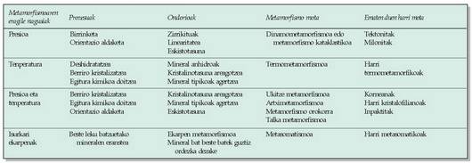 Metamorfismoa hiru faktoreren mende