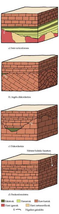 haitz sedimentarioen artean gertatzendirenak dira. Eten bat dagoenean, segida