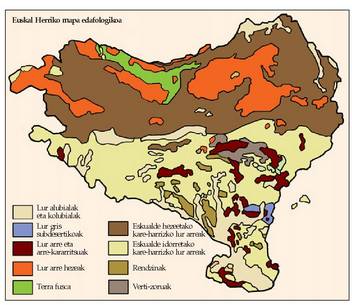 Orain arte aipatutako gertaera guztiak kontuan hartuz, Euskal Herrian lur mota hauek bereiz daitezke: metro koadroko 1300 milimetro baino baino gehiagoko prezipitazioak dituzten eremuetan, lur arreak eta lur arre kare-harritsuak daude.