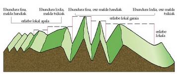 Gorabehera gutxiko erliebea duten lautadetan,