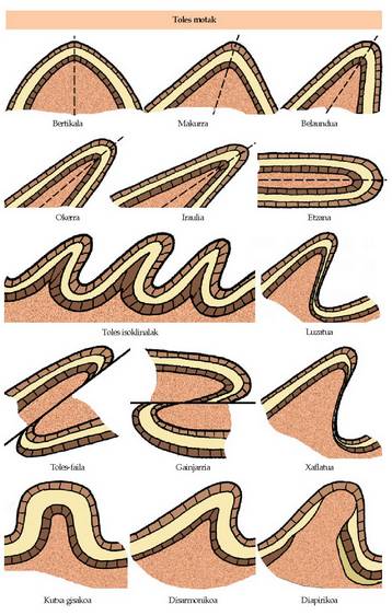 Toles ohikoenak geruzen uhinak dira: antiklinal eta sinklinal deitzen