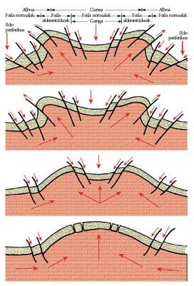 zaien erantzun plastikoaren ondorioz, lur azal tolestuetan bi gune