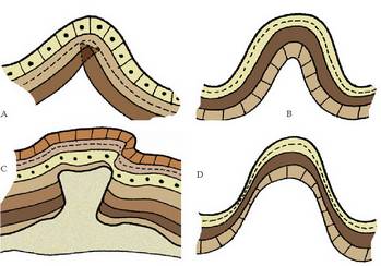 deitzen zaio. Gailurrak eta ildoak azal tolestuaren goreneko eta