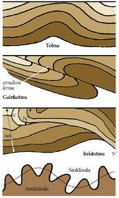 aldapa, inoiz bestearen kontrakoa, dutenak. Sinklinalean geruzen
